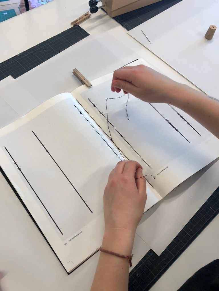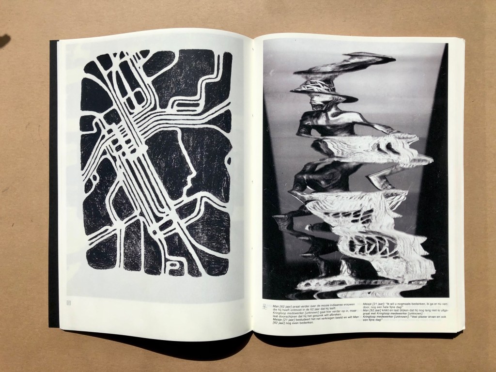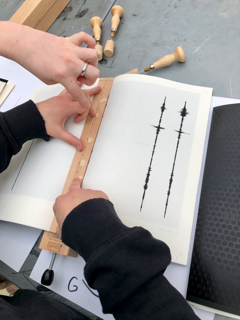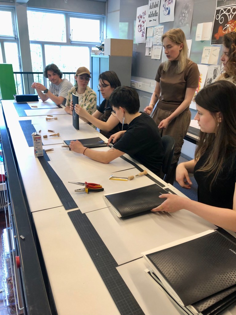TRECHT! 2024 Seminar bookmaking with students from all departments of the Hogeschool voor de Kunsten Utrecht (HKU). Seminar bookmaking with the city of Utrecht in all its facets. Sound, graffiti, graphic design, thrift stores, underwater photos in the city’s canals, maps, broken bicycle locks with the letter U. This motley mix of images found its way into the book. In two weeks collecting, illustrating, photographing, discussing, paper selection, print production and binding. The result is included in the Stadsarchief of Utrecht also the publication and seminar TRAJECTUM I did a year earlier. There are plans to set up these seminars at other academies, each city has its own language, noise, also social and political.